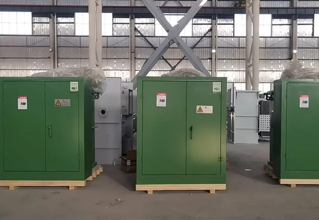 The four 2500 kVA pad mounted transformers purchased by our American client are configured in a three phase star connection. They are primarily intended for local community electrification projects. These transformers utilize high fire point oil (FR3 oil) to enhance safety and environmental performance. They are certified for environmental protection, complying with sustainability standards that include noise control, electromagnetic interference limitations, and minimal oil leakage.